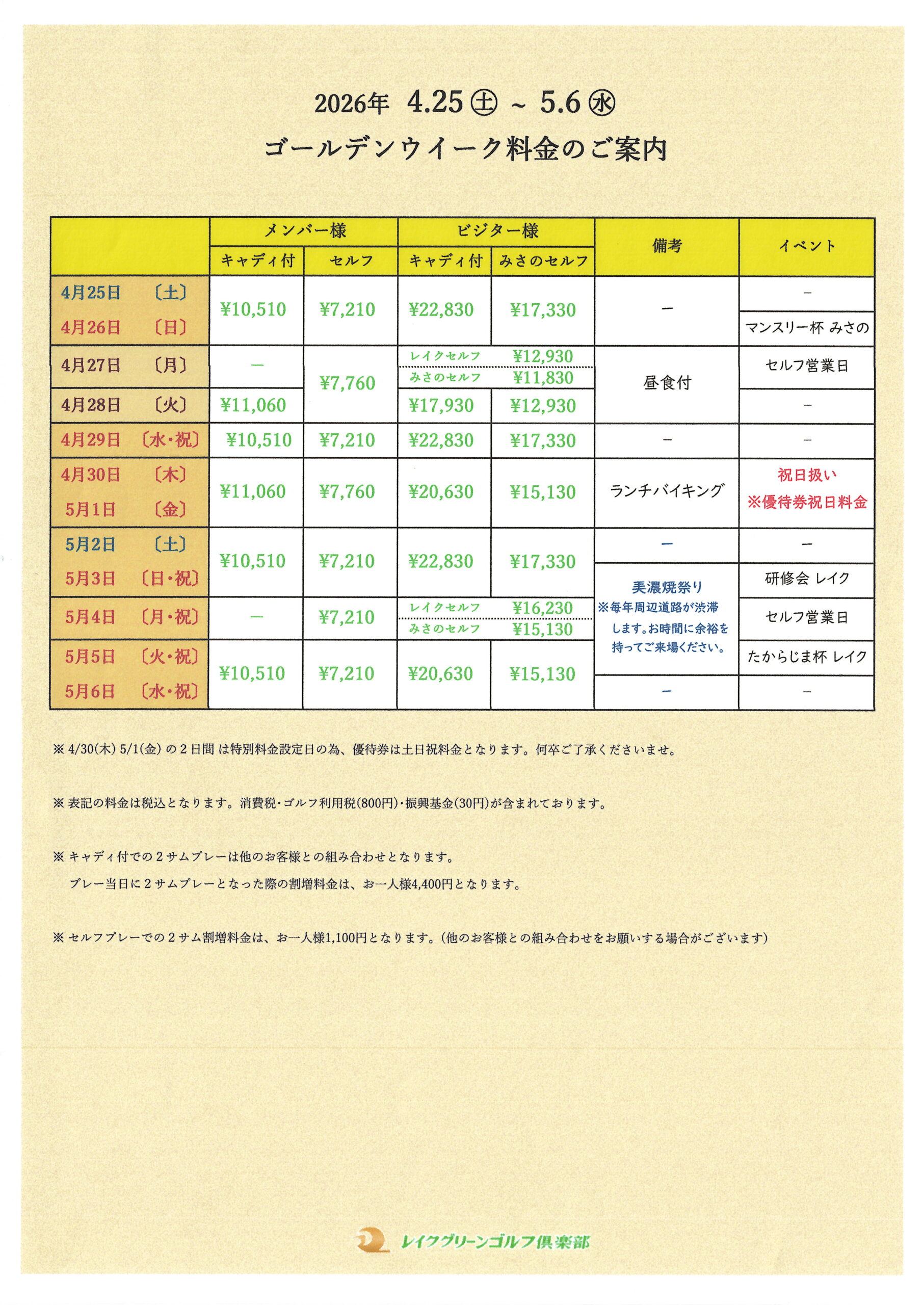 2026GW 料金表