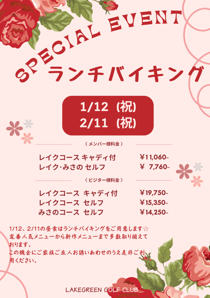 1月12日(祝)・2月11日(祝)2日間限定 ランチバイキングデー