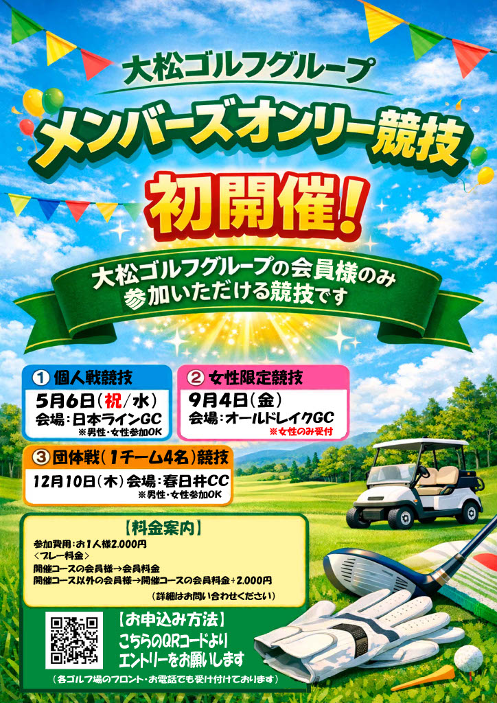 つきましては、今年度、初めて、大松ゴルフグループのメンバー様限定の競技会を企画いたしました。