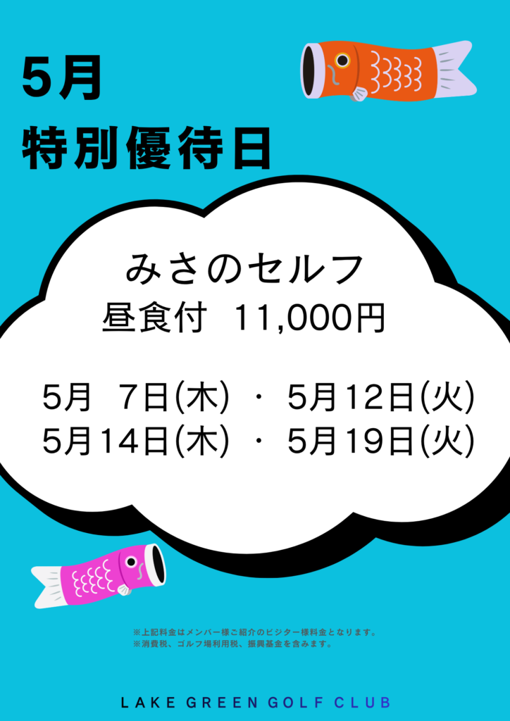 特別優待日はみさのコースのセルフプレーが大変お得です!この機会にご家族、ご友人お誘いあわせの上、是非ご来場ください。